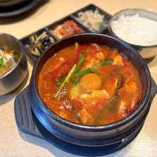 【スンドゥブチゲ】 とうとう今年も師走を迎える事になってもうた 昨日は月末なのにいつもより少し早く帰れたのでその分昼前にお腹が空いてきたところを先輩から またあの韓国料理が食べたくなったから行かへん ?って声かけられたのでラッキー🤞 正午の15分前に到着したのに既に2組が並んでた如何に繁盛してるお店なのかが伺える😅 待つ事15分…やっと席に着けたが先に注文を受けてくれてたので料理が直ぐ出て来て良かった! 本日のチョイスは熱々のスンドゥブチゲ🍲 美味しくてついご飯お代わりしちゃった😋