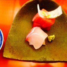 お造り。 オナガダイとマグロ♪ じいちゃんの古稀のお祝いで行ったので、金箔のサービス付き!