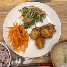 選べるデリ3品セット🐔🐙🥕 ・鶏むね肉の塩こうじから揚げスイートチリマヨネーズソース ・真だこの唐揚げと春菊のサラダ酒粕ポン酢 ・キャロットラペ 定番のデリ2品と春菊サラダにしました 久しぶりですが安定の美味しさです✨