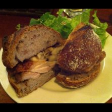 湘南小麦のカンパーニュのポークサンド。 国産小麦の力強い風味のカンパーニュには、厚切りポークの濃い味が良く合います。