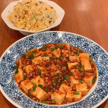 夕食は麻婆豆腐と炒飯 美味しかったです