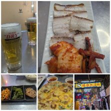 1月12日 鶴橋に行ってきました ビールで乾杯 海鮮チヂミ 茹で豚 パンチャンも出てきました 茹で豚がプルプル!脂というよりコラーゲンって感じ 添えられたキムチも旨辛くて美味しかったです