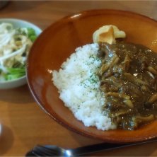 【今日のランチ@食堂カフェ二兎】 牛すじきのこカレー 今日も仕事で名古屋へ( ⁼̴̶̤̀ω⁼̴̶̤́ ) 名古屋で勤務していた時には、週1でランチしていたところです☼꒰๑ϋ๑꒱♬ ランチタイムは、ドリンクの提供はせずに食堂の形態に特化するため、しっかりしたごはんが食べられるんです٩꒰•௰︡๑꒱ु ランチメニューは、日替わり、カレー、まぐろづけ丼、穴子天丼の4種類! しっかり煮込んである牛すじきのこカレーは、トッピングの堅あげポテトともよく合うもんだෆ⃛*:・꒰ ૢ●௰ ૢ●✩꒱