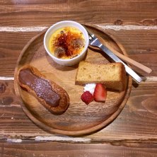 デザート♡ 種類ありすぎて選べなくて 盛り合わせに笑笑 ◎バナナのクレームブリュレ ◎ヘーゼルナッツのアイスエクレア ◎キャラメルシフォン 久しぶりの贅沢(ˊ•̤ω•̤ˋ)♡