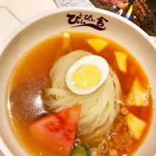 1回目はすごい行列で諦めた、ぴょんぴょん舎の冷麺をまたまた「うまいもんめぐり」でイートイン( ^ω^ )♡ スイカは少し苦手なので抜いてもらっちゃった。 冷麺てあんまり食べる機会なかったけど、つるんとしたのどごしが今の季節ピッタリ(..›ᴗ‹..) スープも深みがあって美味しいいい! 結局キムチ全部入れしちゃったけど、それもまた絶品でした♬ 麺もコシがあって、想像以上にお腹にたまって大満足◎ ぴょんぴょん舎は「盛岡冷麺」の名付け親みたい。美味しいわけだな〜〜