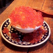 お休みの日の晩御飯 バッテンいくら丼♪ 猪木テーマ曲に合わせて「ばってん!ばってん!」と店内に響き渡る大きな掛け声を掛けながらいくらを山盛りに♪ クレープシュゼットのフランベ真っ青な盛り上がり(笑)