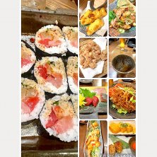 こんばんは☆。.:*・゜ 今日は、誕生日会を兼ねた飲み会です🍻 刺身盛り合わせ エビマヨ ひねぽん だし巻き玉子 パリパリサラダ 海鮮巻 月見つくね #飲み会 #誕生日会