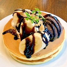 神戸の朝はホットケーキ😊 チョコバナナホットケーキ、コーヒー付きで 1,500円♬ メニューで目についてつい頼んでしまいましたが、これで朝から元気いっぱいです😋