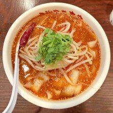 麻辣刀削麺980円 麺を人が削ってくれるお店 程よいかみごたえとツルツル感 カラシビは弱い 胡麻入り 酸味あるスープ もやしがそこそこしっかり入っている 毎日食べたい系の刀削麺でした