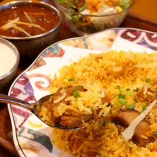 ビリ活2019の39ビリめ。『ナワブ 湯島店』のランチ「チキンビリヤニ&カリーセット」(1190円)。ナワブはパキスタン系みたいでビリヤニは好みな味。パラめだけどパサつき感のないライスは旨味バッチリでホールスパイスもグッド。カレー、ライタの量も十二分。 ●幸せ感:(゚∇^d) グッ!!