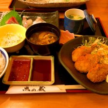 お任せランチ。カレイとホタルイカの煮付け。カジキマグロと鯛のお刺身。里芋煮。茶碗蒸し。ご飯と味噌汁。680円。