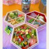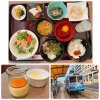娘とランチ 白身魚衣揚げ香味だれ 本日のお造り ポテトサラダ 根菜煮 お味噌 白玉団子