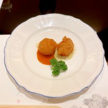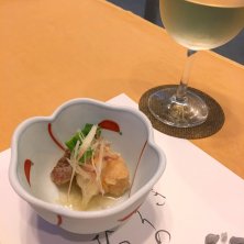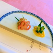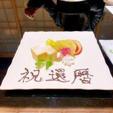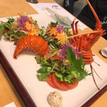 伊勢海老のサラダ中納言風 誕生日なので一緒に記念写真撮りました