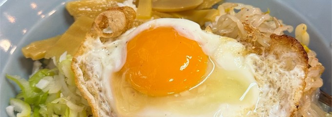 横浜橋通商店街に構える街中華、【酔来軒】に訪問しました。創業から約75年。日本人向けにアレンジした広東料理を提供するお店です。 メニューを眺めるとラーメン,餃子,チャーハン,中華丼…など街中華定番メニューが勢揃い。本日はお店の名物、《酔来丼》@400円を注文しました。ラーメン丼の中にライスが入り、その上に盛られるのはモヤシ炒め,細切りチャーシュー,メンマ,目玉焼き。胡麻油と辛子が入った醤油ベースの特製ダレを掛け、具材とライスが均一になるまでかき混ぜていただきます。