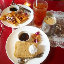 2017年1月21日(土) アフタヌーンサービスとして、ドリンクを頼んだら、無料でシフォンケーキセットかワッフルセットかサンドイッチセットが付いてくる☆アフタヌーンサービスとしてはかなりの量!