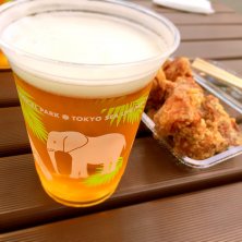 動物園でビールと中津唐揚げ(^ν^) 外で飲むビールは最高だー!