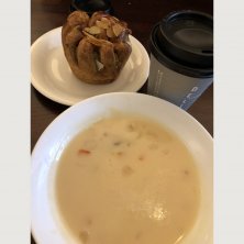 おはようこんにちは😃 朝から母さんを婦人科に連れて行きなんとか納得して処置をさせた…怖がりだから(〜 ̄▽ ̄)〜 診察終わり母ちゃんとモーニング クラムチャウダー くるみパン カフェラテ(*❛⊰❛)ʓਡ~❤ 多分大丈夫でしょ😅