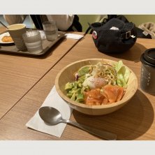 2022.4.15 晩 サーモンとアボカド丼+ミネストローネ、ハムチーズクロワッサン+ハッシュドポテト+コーンスープ。 打ち合わせで悩み事が増えたのとお肉間食効果?で、夜はあっさりめ。ハッシュドポテトは半分私が食べた。