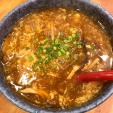 目黒にある陳民の酢辣麺。とろみ強めの細麺。酸味もしっかり効いてます。最後まで熱々で美味しくいただきました😊