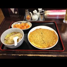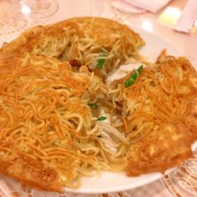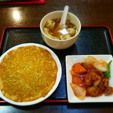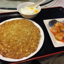 今日のランチは今週のサービスランチの梅蘭特製の変わり焼きそばです。 出張の業務前にいただいてます。中華餡がパリパリ麺にくるまれてます。ワンタンスープもついてけっこうボリュームありました。(^^;;