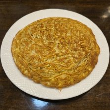 梅蘭 センター北店にて、梅蘭焼きそば。 13年ぶりの梅蘭焼きそば¥999。当時は¥900だったので、価格では結構頑張ってるね。 独特のスタイルは健在。熱々の餡がかかった豚肉、ニラ、もやし、玉葱をカリカリに焼き上げた中華麺で包んだひと皿。見た目は少なめだけど、重量500gでボリュームあり。