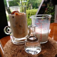 【遡り投稿】5月17日(日) 珈琲時間リハビリ始めてました。 氷ミルクコーヒー 凍らせたアイスコーヒーに 牛乳を注いでいただく飲み物です。 (以前ミス○にもあったような?) 最後まで薄まらず、 むしろ濃くなっていく感じがイイ💕 グラスも実験みたいで可愛いし💠 他のお食事メニューにも興味津々! ナポリタンとか絶対旨そう❣️ こちらは再訪確定ですわ🎵
