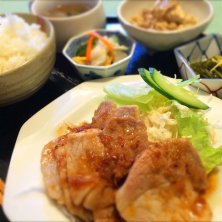 今日のお昼に食べた、能代市二ツ井町・MOMOの生姜焼き定食700円。 #noshiro