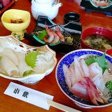 今日のランチ~🎵 ・お刺身定食 すぐ前に日本海⤴⤴😆 越前海岸へドライブです🚗💨 定置網で取れたお魚の盛合せに甘エビ、イカのお刺身まで盛りだくさんでした~😍
