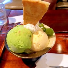 くつわ堂で抹茶パフェ✨ 喫茶スペースは昔ながらの喫茶店みたいな雰囲気が漂ってました(^^) 抹茶が濃くて、小豆との相性は抜群でした♡