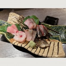 お造里盛り合わせ 生本マグロ・ハマダイ・スマガツオ・寒ブリ・イサキ炙り・ニシン炙り