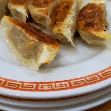 昨日のお昼( ・∇・)というか、朝昼兼用で並んでオープンすぐ入店❗カウンターに座って一皿に5個の餃子が置かれる。焼き餃子と飲み物だけのお店。一皿食べたら…一皿どう?…と、言われてまた食べる‼️わんこ餃子(笑)楽しい~♥️私は初めてのお店。蒸し?もやしの小鉢が付きました。お友だちが言うには、午前中に入った人だけだと。だけど、食べるの忙しくて撮影出来なかったわ。小皿にカラシも付いていた。