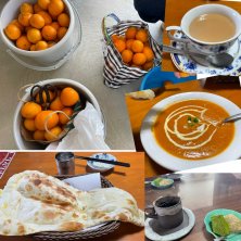 ジム友5人でみかん狩りへ といってもいつもみかんをくれる友達の畑の3本 行ってみてびっくり たくさんのみかんがすずなり 白の革ジャンを着ていたら、枝に引っかかって傷がつくからと作業用上着を貸してくれた 木の表面側のみかんだけでなく枝の下に潜り込んだり 持参のハサミでチョキンチョキン 収穫はそれぞれバケツにいっぱい 友達宅、リフォームをしたというのでお宅拝見も 豪邸、素敵なキッチン 万葉のわらび餅も美味しかった ランチは近くのネパールのカレー屋さんへ 大きなナンがもちもち、カレーも美味しい