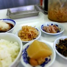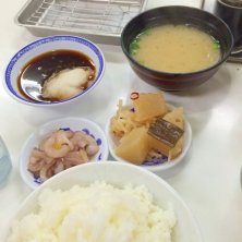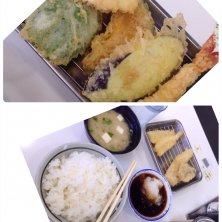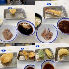たまたま福岡へ行く前に@sinco1108さんの投稿を拝見して美味しそうだったのでググったら、福岡空港の側にあったのでお昼を兼ねて寄らせていただきました(^^) 2時半くらいだったのですが、まだ店の入り口に何人か並んでました。 人気店なんですね✨(picは帰りに撮りました) 取り敢えず、お好み定食を頼んでみました。 (エビ・イカ・豚・白身・ナス・ピーマン・かぼちゃ) 先にご飯とお味噌汁、天つゆが出てきます。 あとカウンターに塩辛と大根の煮物、高菜、ぴり辛のもやしが置いてありました。