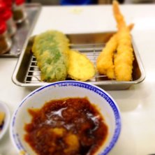 福岡空港近くに構える行列が出来る天ぷら屋、【ひらお 本店】に訪問しました。福岡県内に7店舗展開。HPには『美味い!安い!早い!三拍子そろった天ぷら専門店』と書かれてます。 いろどり定食の内容はハモ,海老,ささみ,イカ,野菜三品となります。 店内はカウンター席のみ。席に座り食券を渡すと、大根おろし入り天汁,ご飯,味噌汁が運ばれます。 そして本格店のように揚がる都度、目の前の銀バットに熱々の天ぷらが置かれます。