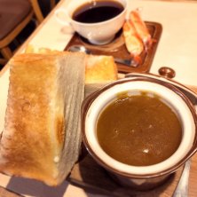 こんにちは❗️本日より1週間入院です〜💉 本日は日曜日につき入院手続きだけ、明日からの軟禁生活前に羽を伸ばしに来ましたよ。 「カレートースト」に触角が動いたので頼んでみたら、全く想像を裏切るスゴイものが出てきました❗️ 軽〜く珈琲のつもりが食事になってしまいましたわ❗️
