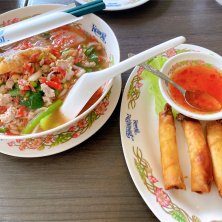 センレック・トムヤムムー(ラーメン)とエビ春巻き。 ラーメンは📺で紹介されててずっと気になってた 控えめの酸味でめちゃくちゃ美味しかった😳 絶対リピする! スープも全部飲んじゃったww