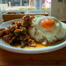 相変わらずの人気店でガパオライスを