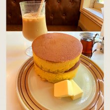 食べログ情報によると「ホットケーキの待ち時間が長い」 と書いてあったので 翌朝10時0分にお店行ってみるも 80分待ちだったのであきらめて モーニングセットにしました お店の人が一生懸命作ってくれてるのは分かるけど私にとったらたかがホットケーキ(笑)で80分は待たない モーニングセットでも十分美味しかった