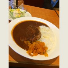 ハンバーグカレー /¥890- 神保町駅近く サラサラ系ルー。中辛くらい。 ミニサラダ付き。 店内に喫煙ルーム有り。