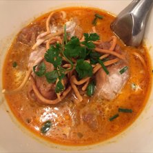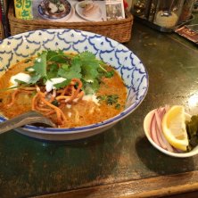 夜ごはん 久しぶり過ぎてメニュー忘れてたと思ったけど 見たらこれしかない、というトムセップ。 ハーブが効いた酸味のある牛すじ煮込みスープ美味しいです ご飯てんこもり カオソイ小&ごはんパターンと葛藤していた、若かりし頃を思い出しました 店主のお姉さまも元気そうで、行けて良かった