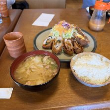 三色ひれかつ定食☆ チーズ 梅 しそ 豚汁めちゃめちゃ美味しい(^ ^)