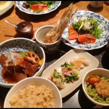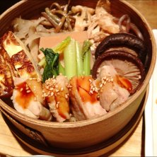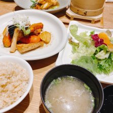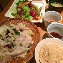 平日限定 桜山豚のざる蒸しランチ(^o^) 梅ポン酢とポン酢で頂く野菜たっぷりランチ、豚肉の下に隠れた山盛り白菜も2種のタレでペロッと完食です(o^^o)