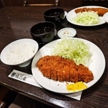 少し遅めのランチ 横浜に来たので勝烈庵さんでロースカツ定食♬にカキフライ一つを追加オーダー いや〜♬美味い\(^o^)/