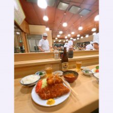 娘の高校学校説明会に行った後、目黒駅前のとんきに行く。凄く久しぶり。4時50分に入ったのに既に行列の待ち。40分近く待って席に着く。 ビールを飲んでコンブの佃煮を食べながらロースを待つ。すぐに出てくるのはいい。 薄い衣でカリッと揚がっているここのとんかつは やっぱりこのカウンターで食べるといい。 3人で行ったがちょうど角でL字で座れたので話も良くできるし店内も目見渡せていい席だった。 娘がここの学校に受かったら来る頻度が増えるだろうな…
