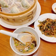 ・夕食 ✔︎小籠包 3種 豚・蟹味噌・ホタテ ✔︎野菜と豚肉の蒸し餃子 ✔︎豆腐干と昆布の和え物 ✔︎サンラータン麺 結局そのまま夕食も外食🙂 小籠包はお家では食べられないから、外食となると食べたくなる一品。
