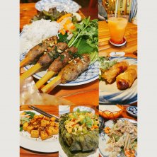 創立記念日でお休みの娘と初ベトナム料理♬ *青パパイヤのサラダ *春巻きの前菜盛り合わせ(生春巻きと揚げ春巻き二種) *チキンのココナツカレー&ライス *バインカン麺(南部ホーチミンの鶏肉もちもち麺) *白玉とタピオカのチェー *ベトナム茶 1人前のランチだけど、2人で半分こでちょうど良かった(*^▽^*) 初めての味でびっくりしたのもあったけど(笑) 美味しくいただきました♪