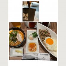 謎解きの後で〜 というより、謎解けてない…😓 トムヤムフォーとガパオライスとベトナム春巻きとベトナムのお茶的な〜 しっかりした味付けで血圧が心配だけど、 チキン味よりトムヤム味を選んでしまう私…😅 でも、やっぱりトムヤムフォー正解 期待したお味 ガパオライスと春巻きも合っていて、 身体も温まりました〜😍