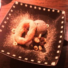 手作りドーナツとアイスクリーム(ごま)の付け合わせ! アイスクリームはチョイス出来るから、好きなものを♡ 揚げたての甘くないドーナツとアイスの甘さが絶妙♡
