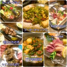 昨夜の宴会(第1回戦) ✴ヒージャー(山羊)の刺身 独特のクセがあります。 ✴もずくの天ぷら これも定番。外せません❗ ✴ゴーヤーチャンプル 苦味が良いね🎵 ✴ピリ辛肉豆腐 白いご飯が…。 ✴シーザーサラダ ✴地鶏のたたき ✴刺身の盛り合わせ