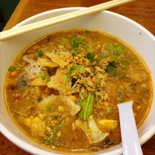 ミャンマー料理をランチに。 モヒンガーっていう魚のスープに素麺が入ったような一品。 ディープなお店だった〜!